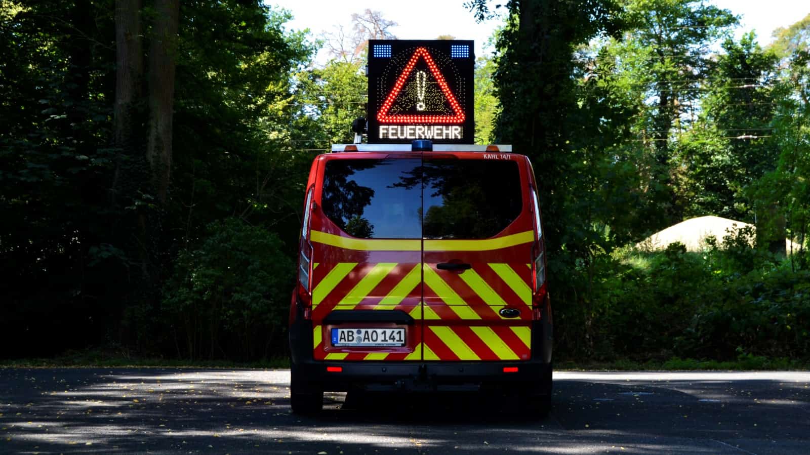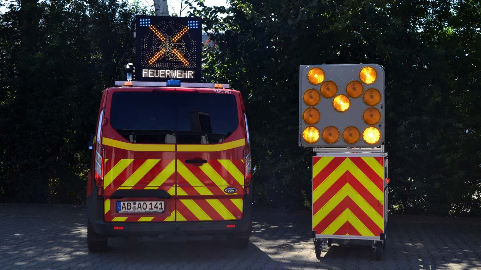 Die Feuerwehr Kahl hat eine neue LED Absicherungstafel bzw. Vorwarntafel in den Betrieb genommen.